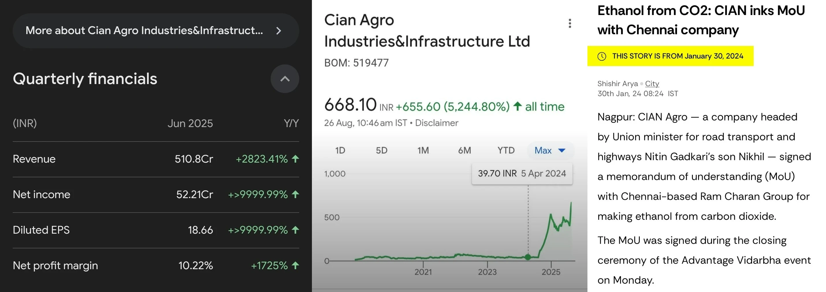 Nikhil Gadkari son of NG. His ethanol producing firm went from ₹17 Crore in Revenue to ₹510 crore revenue in less than a year, around the same time when Gadkari pushed E20 down the throats of Indians. Of course it is a coincidence, Yes?